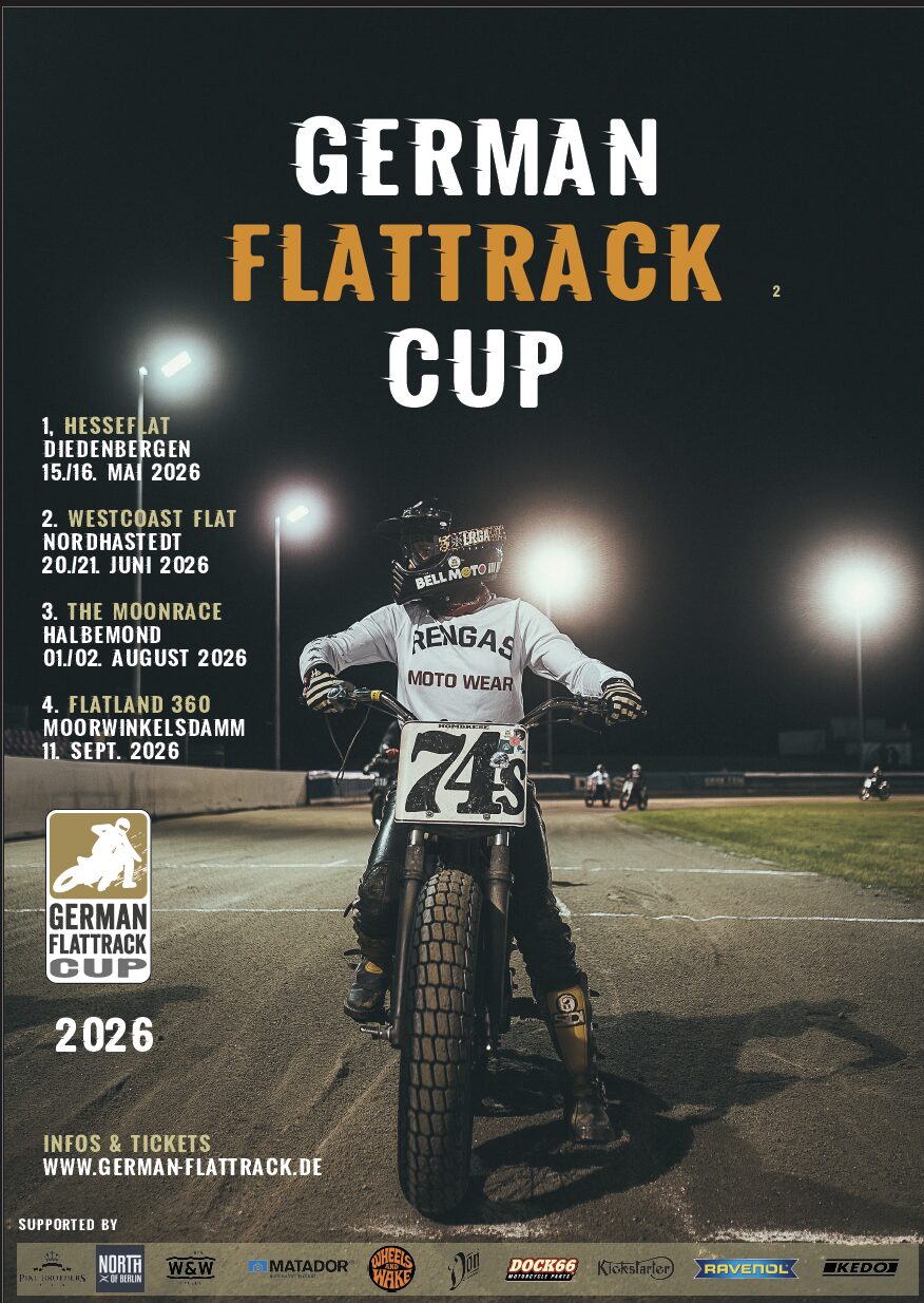 Teilnehmer GERMAN FLATTRACK CUP 2026 Veröffentlicht 6 April, 2026 Kategorien:Der Cup Vorheriger Beitrag Starterliste Moorwinkelsdamm 2026 Nächster Beitrag Starterfeld HESSEFLAT 2026 (so far..)